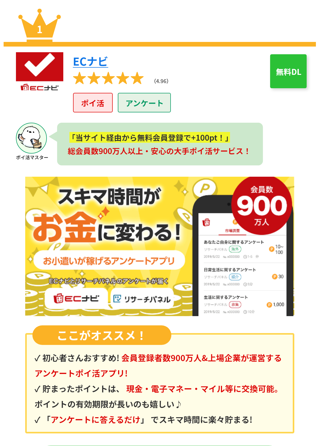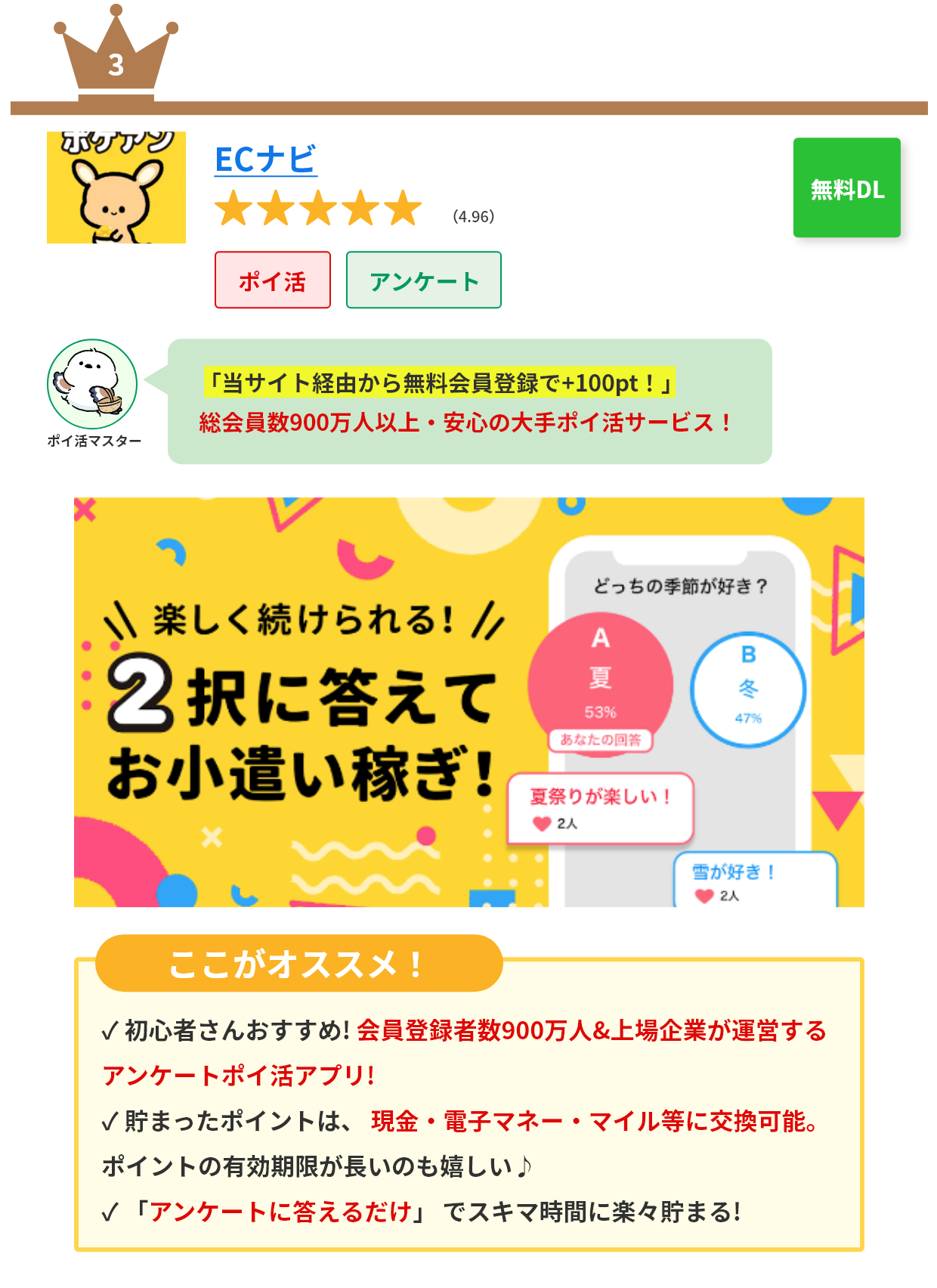 初心者でも簡単に始められました。ポイントがすぐ貯まるので、モチベーションも維持できます!